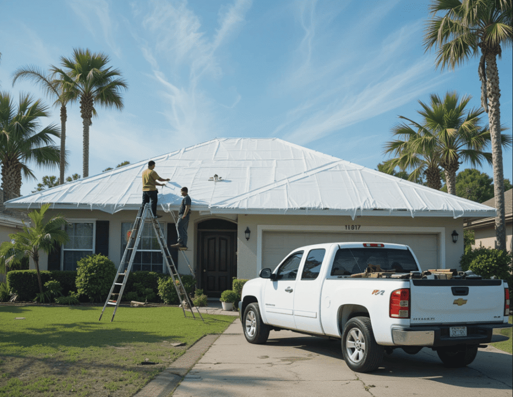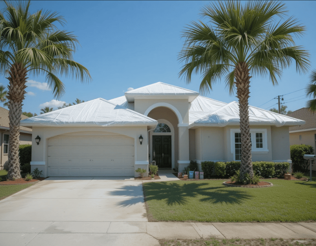 Protect your home with shrink wrap roof sealing in Broward County and Palm Beach County. Our disaster roof protection is wind-resistant, waterproof, and ideal for emergency roof damage after storms or hurricanes. Fast response and reliable temporary roof cover.